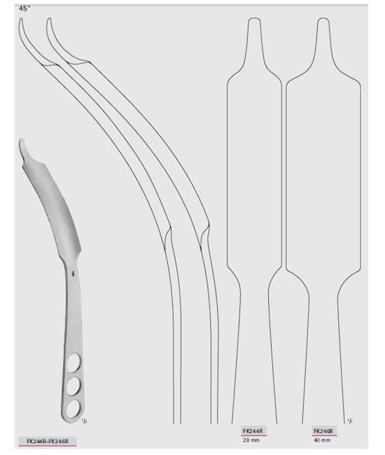 - FK218R - 240 mm, 28 mm, tępy koniec