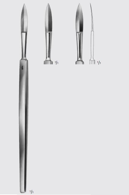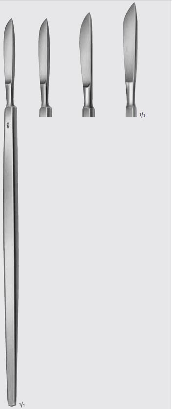 • Noże do cięcia chrząstki z zakrzywionym ostrzem