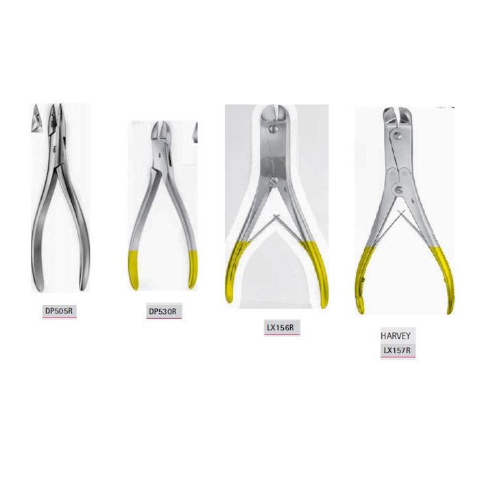 - LX159R - 175 mm, o miękkich drutów do śr. 2,0 mm, do drutu twardego do śr. 1,5 mm, do cięcia drutów w pobliżu kości, specjalnie utwardzone krawędzie tnące