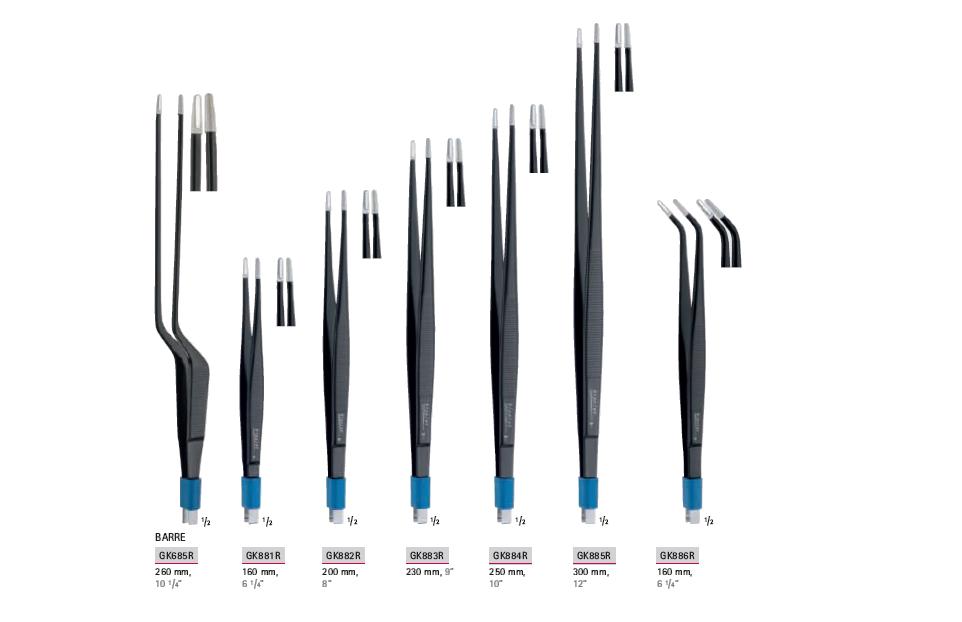 Pęseta o całkowitej długości 160 mm, długość elektrody 0,9 mm. Posiada powierzchnię, dzięki której skoagulowana tkanka nie przywiera do narzędzia.