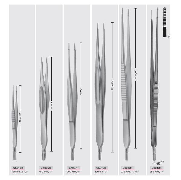 Pęseta anatomiczna o długościach odpowiednio: 200 mm, 240 mm, 300 mm.