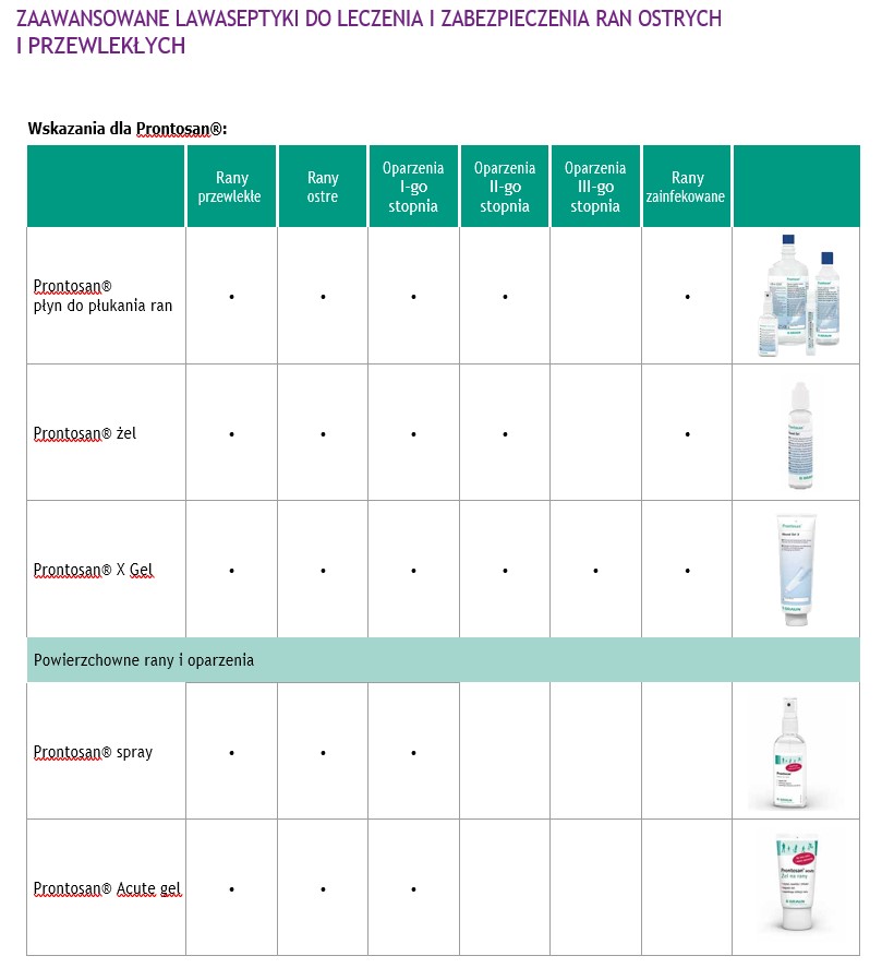 - Możliwość pozostawienia w opatrunku do kilku dni (Prontosan Gel / Gel X)