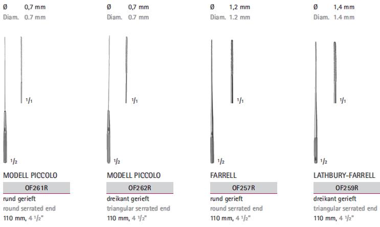 - OF257R - okrągła, ząbkowana końcówka, długość 110mm, średnica 1,2mm