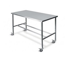 Blat wykonany ze stali nierdzewnej, posiada kółka z blokadą.
