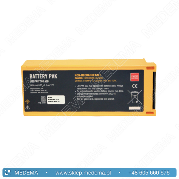 DIS 3100 A - Bateria Li-SO2 - 5 lat przydatności do użycia. Bateria - bez możliwości ładowania. Termin przydatności baterii może być krótszy - zależny jest od temperatury przechowywania w stanie gotowości, ilości uruchomień oraz wykonanych defibrylacji. Bateria kompatybilna z: