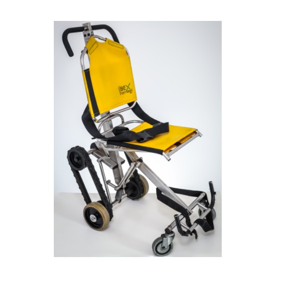 Krzesełko posiada gąsienicowy system płozowy, umożliwiający bezpieczne poruszanie się z pacjentem po schodach,