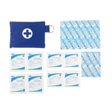 Apteczka podręczna zawierająca podstawowe artykuły niezbędne do udzielenia pierwszej pomocy w czasie podróży, pieszych wędrówek czy wakacji. W jej skład wchodzą: chusteczki nasączone alkoholem 4 szt., chusteczki antyseptyczne 4 szt., bandaż samoprzylepny 72*19mm 4 szt., bandaż samoprzylepny 56*19mm 4szt.