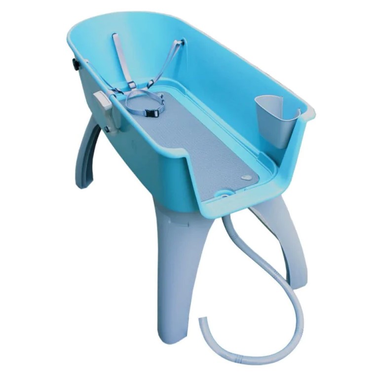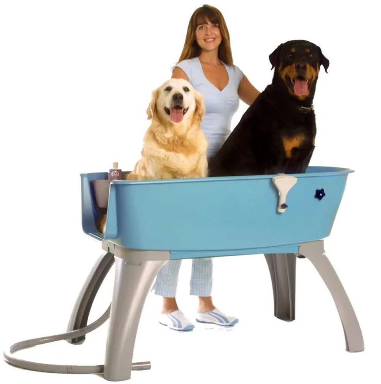 Bardzo wygodna, poręczna i lekka wanna produkcji amerykańskiej. Wyłożona w spodniej części antypoślizgową pianką. Bardzo łatwa w montażu. W komplecie z wanną znajduje się wąż odpływowy, 3-punktowa smycz do zapięcia psa, końcówka spryskująca podłączana do węża zasilającego z wodą. Rozmiar duży odpowiedni jest dla psów takich ras jak: berneńczyk, nowofundland, bernardyn, bull mastiff itp.