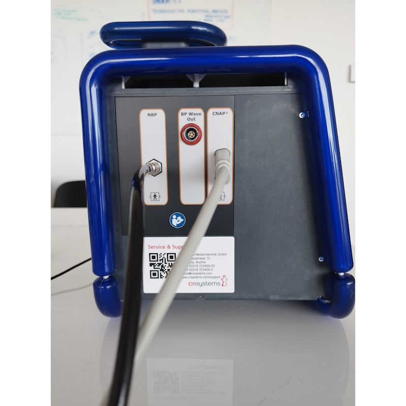 CNAP® – Continuous Non-Invasive Arterial Blood Pressure to nieinwazyjna metoda ciągłego pomiaru ciśnienia krwi u dorosłych pacjentów i dzieci od 4. roku życia. Zapewnia ciągły pomiar skurczowego, rozkurczowego, średniego ciśnienia tętniczego i ciśnienia tętna. Technologia opiera się na rozładowywaniu naczyń, co jest podstawową i najbardziej sprawdzoną metodą wykrywania zmian objętości krwi w palcu i przekształcania sygnałów fotopletyzmograficznych na ciągłe sygnały ciśnienia krwi. Krzywa ciśnienia krwi pacjenta jest rejestrowana przez monitor CNAP® 500 przy użyciu podwójnego mankietu z czujnikiem podczerwieni i komorami powietrznymi. Zintegrowany sygnał mierzy ciśnienie krwi w palcu, wytwarzając ciśnienie, które dokładnie przeciwstawia się ciśnieniu wywieranemu przez krew. Dodatkowo za pomocą modułu ramiennego NBP (oscylometryczny pomiar ciśnienia krwi) ciśnienie mierzone na palcu kalibrowane jest do wartości bezwzględnych (do ciśnienia w tętnicy ramiennej, czyli na poziomie serca). Technologia ta zapewnia absolutną dokładność. Pulsacje w mankiecie są podstawą do określenia wartości skurczowego i rozkurczowego ciśnienia krwi. Mankiet NBP można założyć na ramię pacjenta po tej samej stronie ciała co element palcowy lub po przeciwnej stronie.