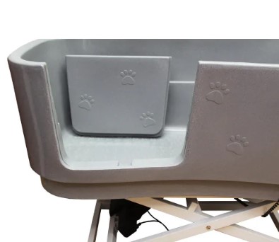 Profesjonalna wanna groomerska Blovi, wykonana z polyethylenu. Wyposażona jest w półkę ułatwiająca kąpiel małych psów. Regulacja wysokości odbywa się za pomocą nożnych pedałów. Wysuwana boczna przegroda wejściowa umożliwia łatwe wprowadzenie psa do wanny. Na obrzeżach wanny znajdują się otwory na butelki z kosmetykami. Idealna do kąpieli każdej rasy, niezastąpiona w każdym profesjonalnym salonie groomerskim.