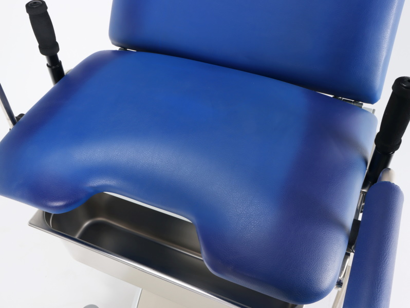 - Tapicerka z atestem medycznym w kolorze granatowym (możliwość wymiany tapicerki na nową, z naszego wzornika kolorów za dodatkową opłatą),