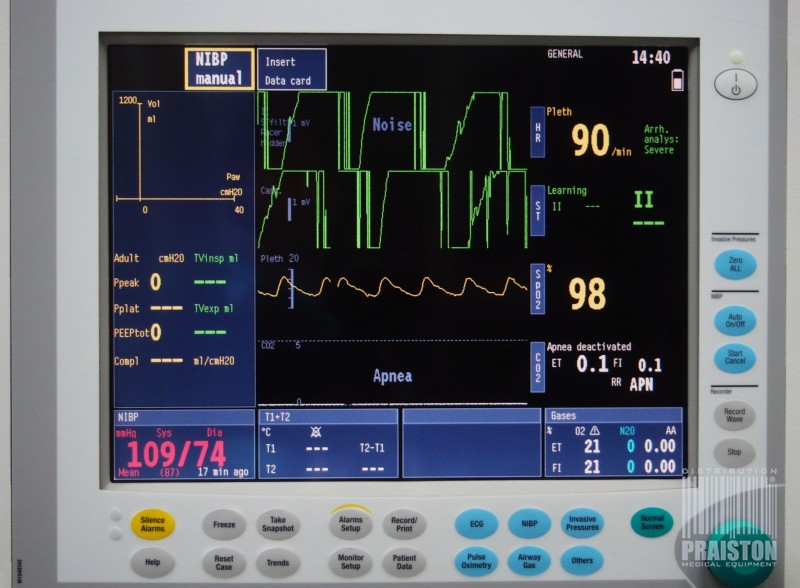 - Moduł pomiaru gazów anestetycznych M-CAIO (sevofluran, halotan, izofluran, enfluran, desfluran) O2, N2O, CO2, z pułapką wodną D-Fend,