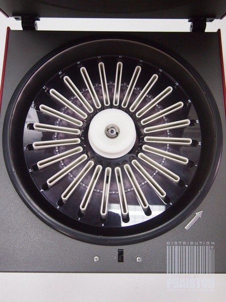 - Rotor kątowy posiada 24 gniazda na płytki (kasety) o szerokości 5 mm i długości 70 mm,