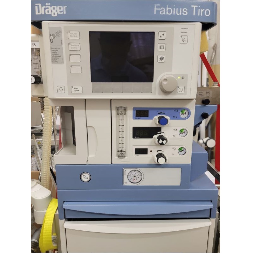 Aparat do znieczulania Drager Fabius Tiro z analizatorem gazów SCIO i kardiomonitorem Infinity Delta.