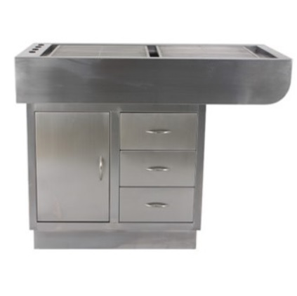 - Stół stomatologiczny w całości wykonany ze stali nierdzewnej 304 odpornej na rdze, a także działanie środków do dezynfekcji czy sterylizacji.