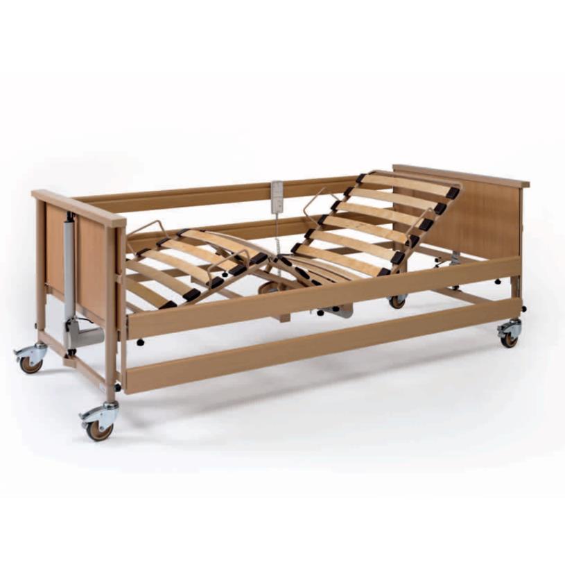 Łóżko rehabilitacyjne Economic II oferuje rewelacyjny stosunek ceny do jakości oraz charakteryzuje się niezwykle solidną konstrukcją oraz wysoką jakością wykonania. Dzięki temu łóżko jest bardzo wytrzymałe, a co za tym idzie łatwe i niedrogie w utrzymaniu. Na łóżku można umieścić materac przeciwodleżynowy o grubości nieprzekraczającej 18cm bez dodatkowych, często kosztownych poręczy zabezpieczających. Oparcie pleców, ud, funkcja anty-Trendelenburga oraz wysokość leża jest regulowana elektrycznie przy pomocy pilota, z możliwością blokad poszczególnych pozycji.