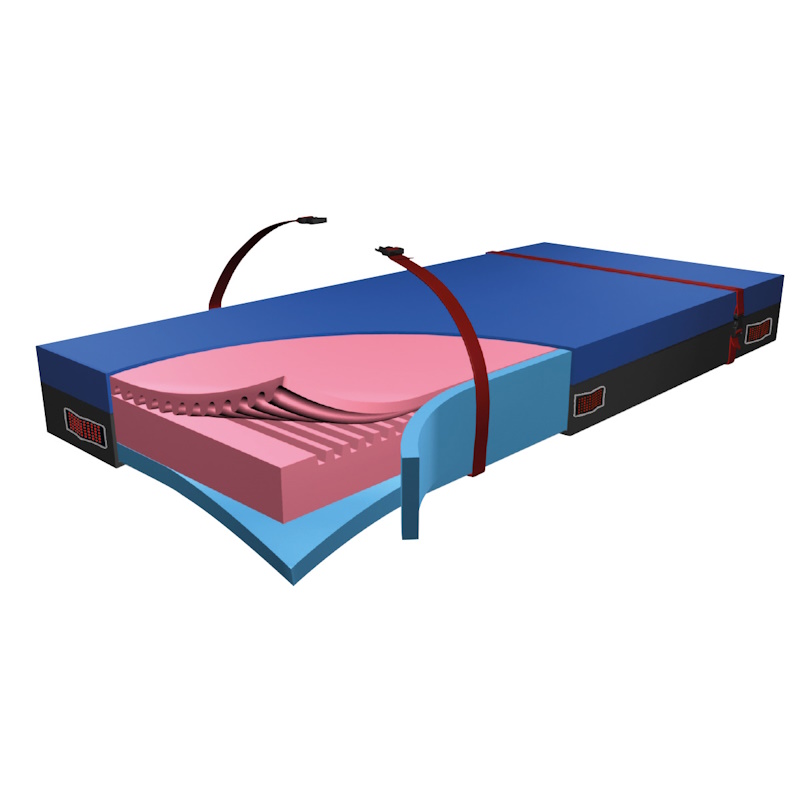 To rozwiązanie łączące ze sobą cechy wysokiej jakości materaca przeznaczonego do terapii odleżyn u pacjentów do 250 kg z funkcją ewakuacji. Trzywarstwowa konstrukcja wykonana z pianek o różnej gęstości i grubości z podłużnymi i poprzecznymi nacięciami zmniejsza ucisk na tkanki, co pozwala na zastosowanie materaca w terapii odleżyn do 4 stopnia (EPUAP), a także profilaktyce odleżyn i leczeniu bólu. Wodoodporny oddychający pokrowiec z systemem minimalizującym siły ścinające utrzymuje skórę w odpowiedniej kondycji. Funkcja ewakuacji pozwala w szybki sposób przenieść pacjenta z łóżka szpitalnego na wózek transportowy lub, jeżeli przejazd wózkiem jest niemożliwy, przetransportować pacjenta bezpośrednio na materacu.