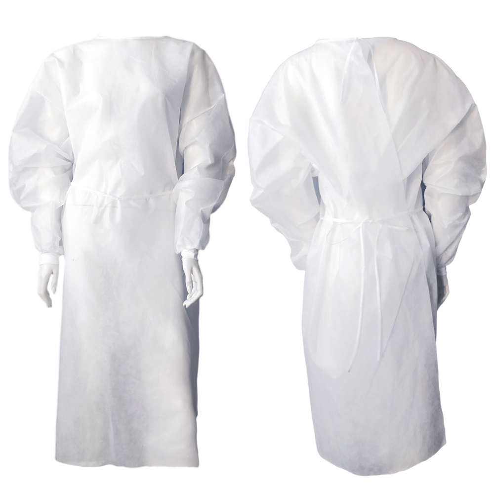 Fartuch ochronny wykonany z certyfikowanej tkaniny medycznej polipropylenowej, wiązany w dwóch punktach, elastyczne ściągacze w rękawach umożliwiają idealne dostosowanie i przyleganie do nadgarstków.