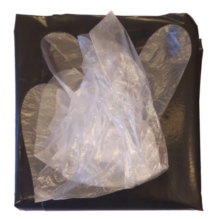 • gruba, czarna, w komplecie z parą foliowych rękawiczek,