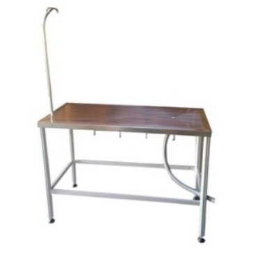 - Stół zabiegowy dla klinik weterynaryjnych, wyposażony jest w profilowany blat wykonany ze stali 304 z montowanym stojakiem na płyny infuzyjne.