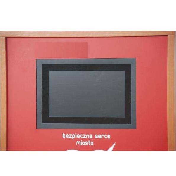 Gablota LCD wyświetlająca film instruktażowy z pierwszej pomocy i użycia AED, każdy ma możliwość zapoznania się z urządzeniem AED. Film oprócz prezentacji użycia AED pokazuje algorytm postępowania przy nagłych wypadkach.