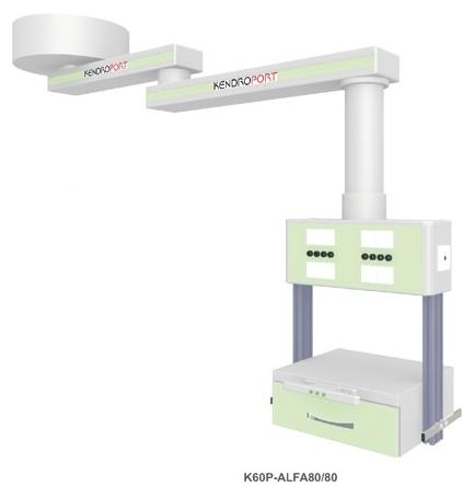 Kolumna chirurgiczna z ramionami podnoszonymi typu BETA . Wyposażenie podstawowe: pneumetyczne hamulce wszystkich przegubów; półka 45x50cm 1 szt.; szuflada 1 szt.; gnizda elektryczne 230V 8 szt.; gniazda wyrównywania potencjału 8 szt.; przygotowanie pod instalację teletechniczną 2 szt.; gniazda gazowe: AIR sprężone powietrze 0,5 2 szt., VAC próżnia 2 szt., sygnalizator gazów 1 szt.