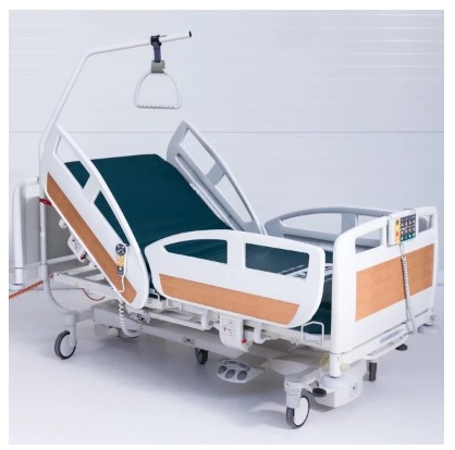 - Łóżko w pełni elektryczne z regulacją wysokości, segmentu pleców i uda, funkcji Anty- i Trendelenburga dokonywanych za pomocą panelu centralnego oraz barierek bocznych