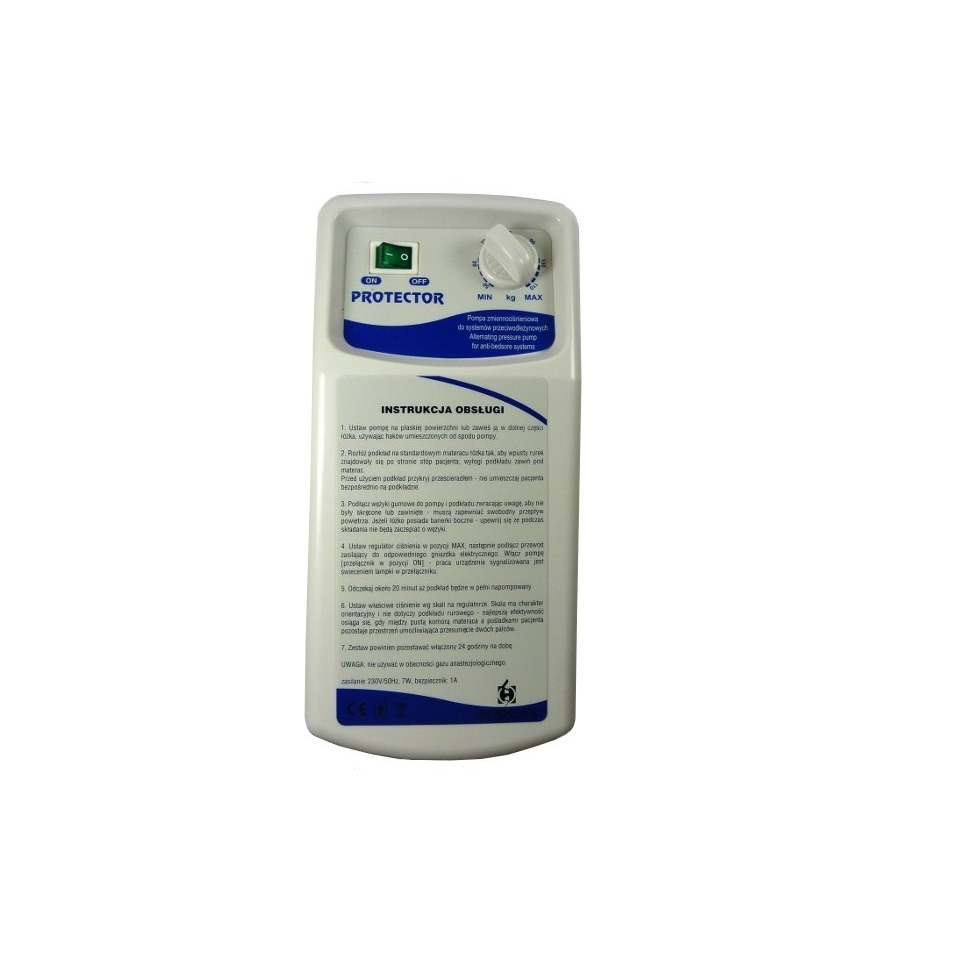 Wydajnośc pompy 4,5l/min. w zakresie regulacji ciśnienia od 40 do 100mm Hg.