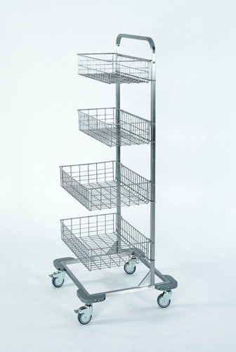 2x kosz nierdzewny 01512, 2x kosz nierdzewny 01513, 4x obrotowe koła d=7,5 cm, w tym 2 z nich z hamulcem