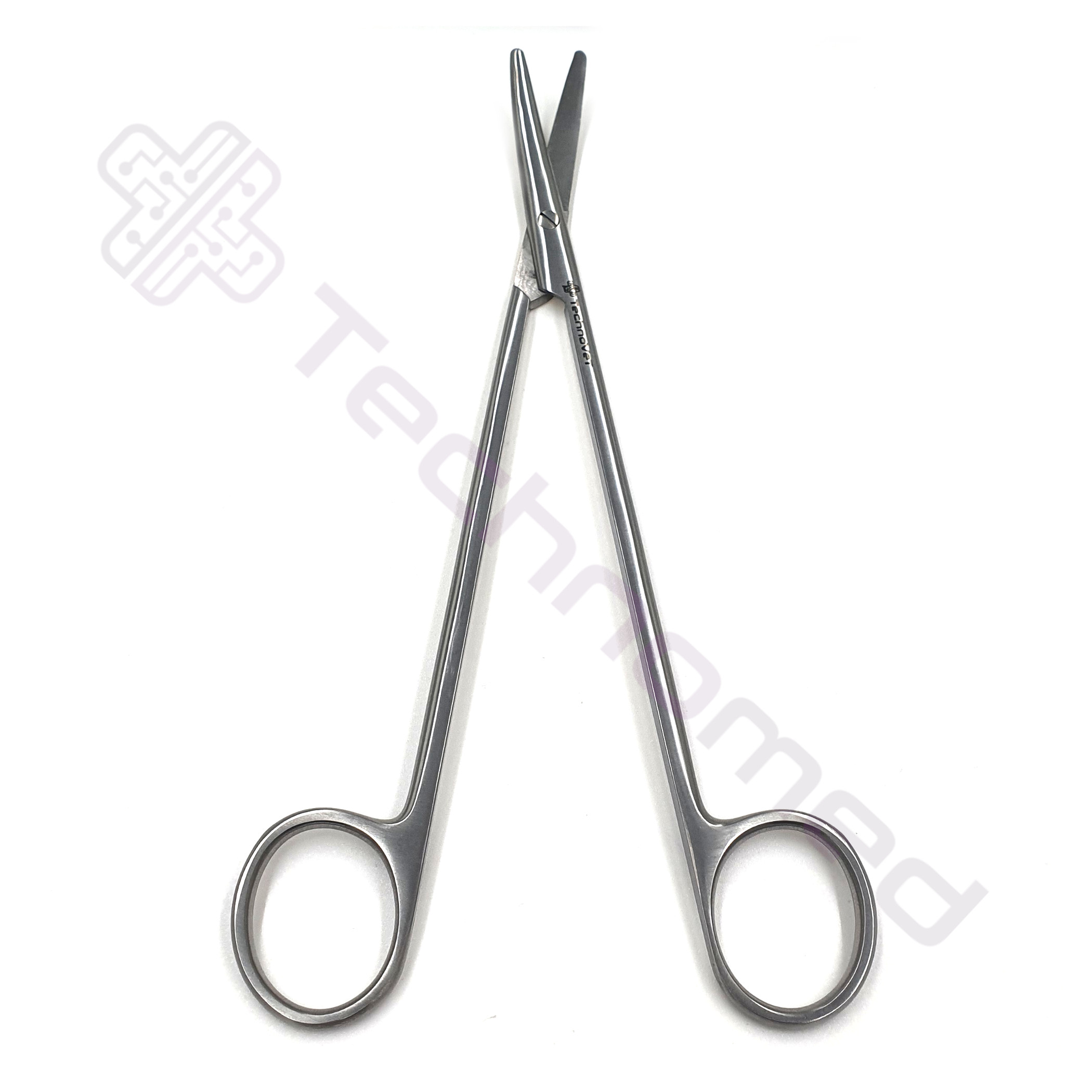 Nożyczki METZENBAUM, długość całkowita 180mm, odgięte, tępo-tępe, narzędzie wielorazowe, solidne wykonanie ze stali nierdzewnej. Produkt dedykowany medycynie weterynaryjnej.