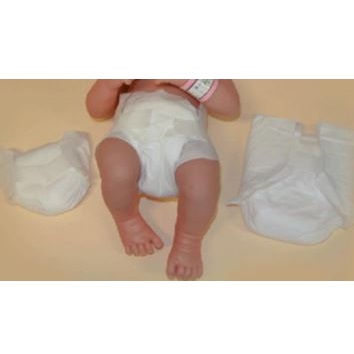 - Aby właściwie dobrać rozmiar pieluszki należy dokonać oceny wielkości samego pacjenta. Występują cztery rozmiary pieluszek, jak poniżej.
