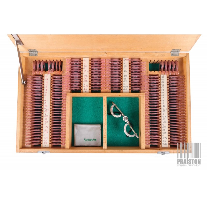 - Kaseta okulistyczna jest zestawem soczewek o różnej mocy, które wraz z oprawą próbną służą do badania wzroku oraz doboru odpowiednich okularów,