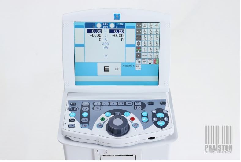- Foropter NIDEK Model RT-5100 na ruchomym ramieniu - oferuje szybkie i płynne zmiany soczewek, umożliwiając operatorowi pokazanie drobnych zmian recepty za naciśnięciem jednego przycisku,