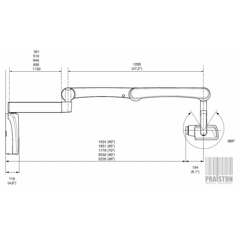 Wyważone ramię aparatu zapewnia płynne, dokładne ruchy, powodujące precyzyjne i łatwe ustawienie głowicy rentgenowskiej,