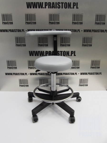 Używany, stan techniczny bardzo dobry, Produkcji polskiej, Nowa tapicerka z atestem medycznym w kolorze szarym (możliwość wymiany tapicerki z naszego wzornika kolorów za dodatkową opłatą), Regulacja wysokości siedziska w zakresie: 52 - 72 cm, Niezależna regulacja wysokości i rozstawu oparcia, Podstawka pod nogi, Mobilny, na podwójnych kółkach, Wymiary: Podstawa pięcioramienna o średnicy: 65 cm, Wymiary siedziska: Ø 36 x 8 cm, Wymiary oparcia: 50 x 8 x 4 cm, Gabaryt ogólny: 65 x 65 x 72/92 cm, Waga: 11 kg, Kat 09, Posiada wystawiony aktualny Paszport Techniczny, Gwarancja: 6 miesięcy na rynek krajowy - Polska, 1 miesiąc na rynek międzynarodowy, Możliwość finansowania (tylko Polska): Raty, Leasing, Pożyczka,