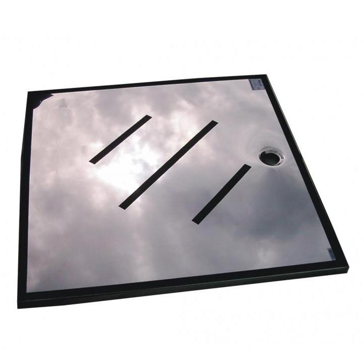 Brodzik nierdzewny o wymiarach 80x80 cm i wysokości 3 cm.