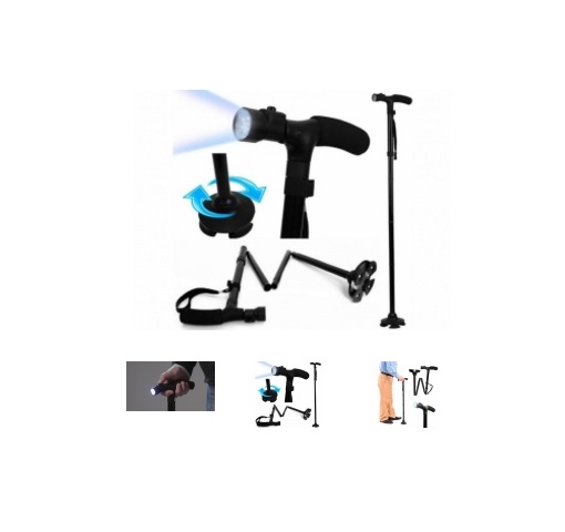 Laska posiada 4 punktową podporę, dzięki której sama utrzymuje pion. Dodatkowo posiada przegub z możliwością obrotu o 360°. Już nigdy więcej nie będzie problemu ze schylaniem się po przewróconą laskę.