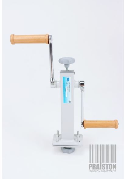 - Rotor do ćwiczeń kończyn górnych z płynną regulacją oporu za pomocą pokrętła umocowanego poziomo na wysokości osi obrotu korby,