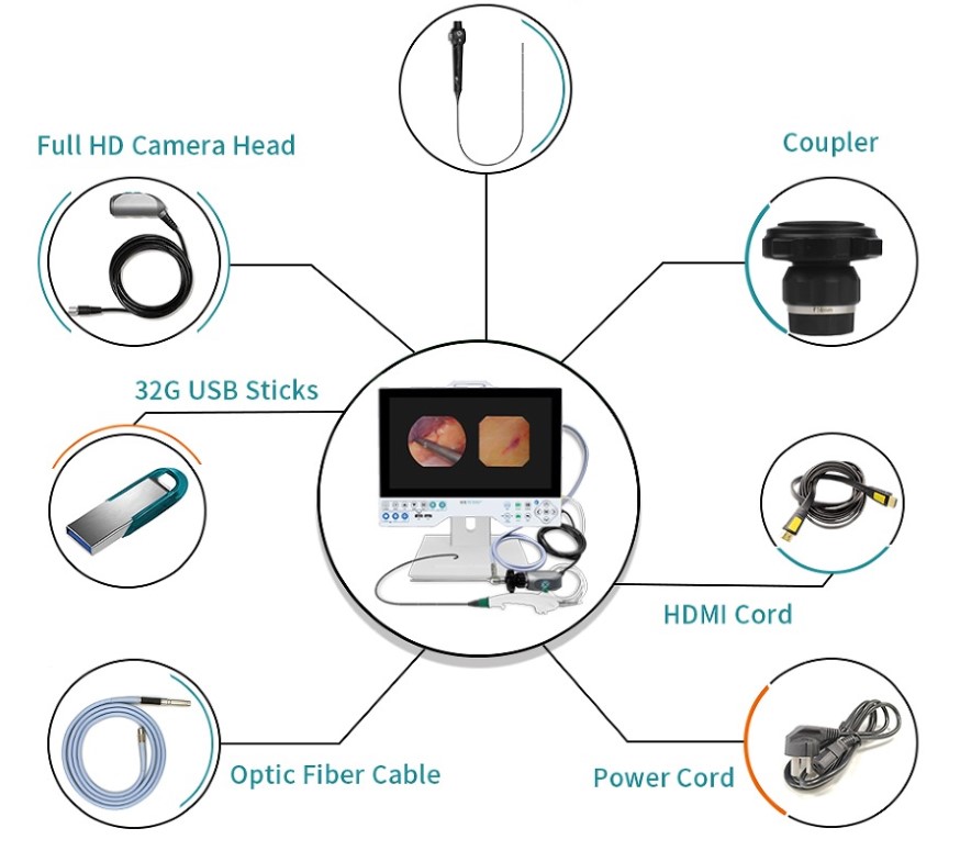Zintegrowany system kamer HD do endoskopii typu „wszystko w jednym”. Przenośna kamera endoskopowa może być szeroko stosowana we wszystkich oddziałach klinik i szpitali: laryngologii, ortopedii, urologii, ginekologii, neurochirurgii, chirurgii plastycznej i tak dalej. Jest kompatybilny ze wszystkimi typami endoskopów sztywnych i elastycznych, takich jak sinuskop, otoskop, laryngoskop, artroskop, endoskop kręgosłupa, cystoskop, ureteroskop, restoskop, histeroskop, laparoskop itp. jak i endoskopów giętkich wielokrotnego użytku ( jednorazowe również) takich jak: rhinolaryngoskopów , video-bronchoskopów, video-cystoskopów, video-cysto-nephroskopów i to wszystko do jednego urządzenia.