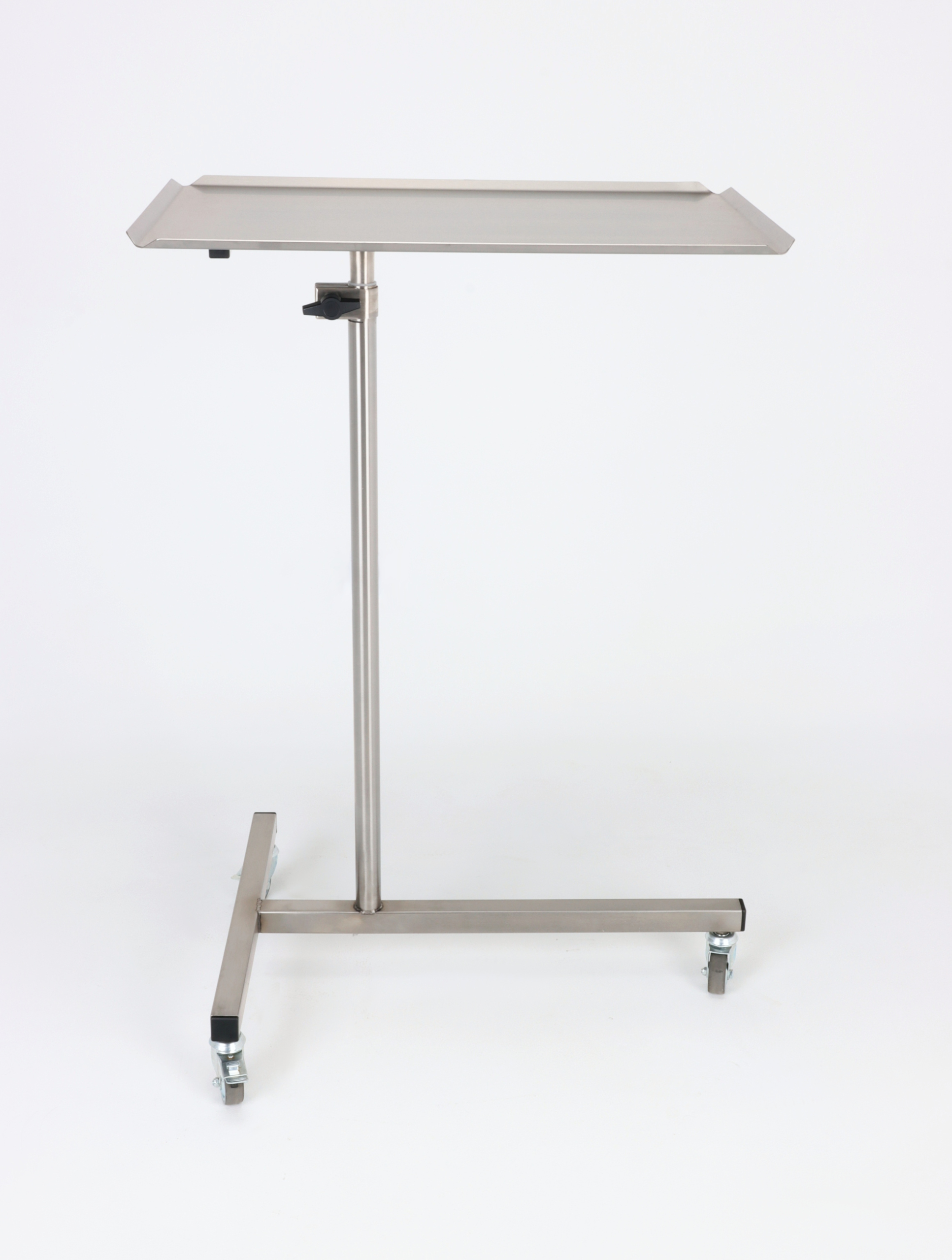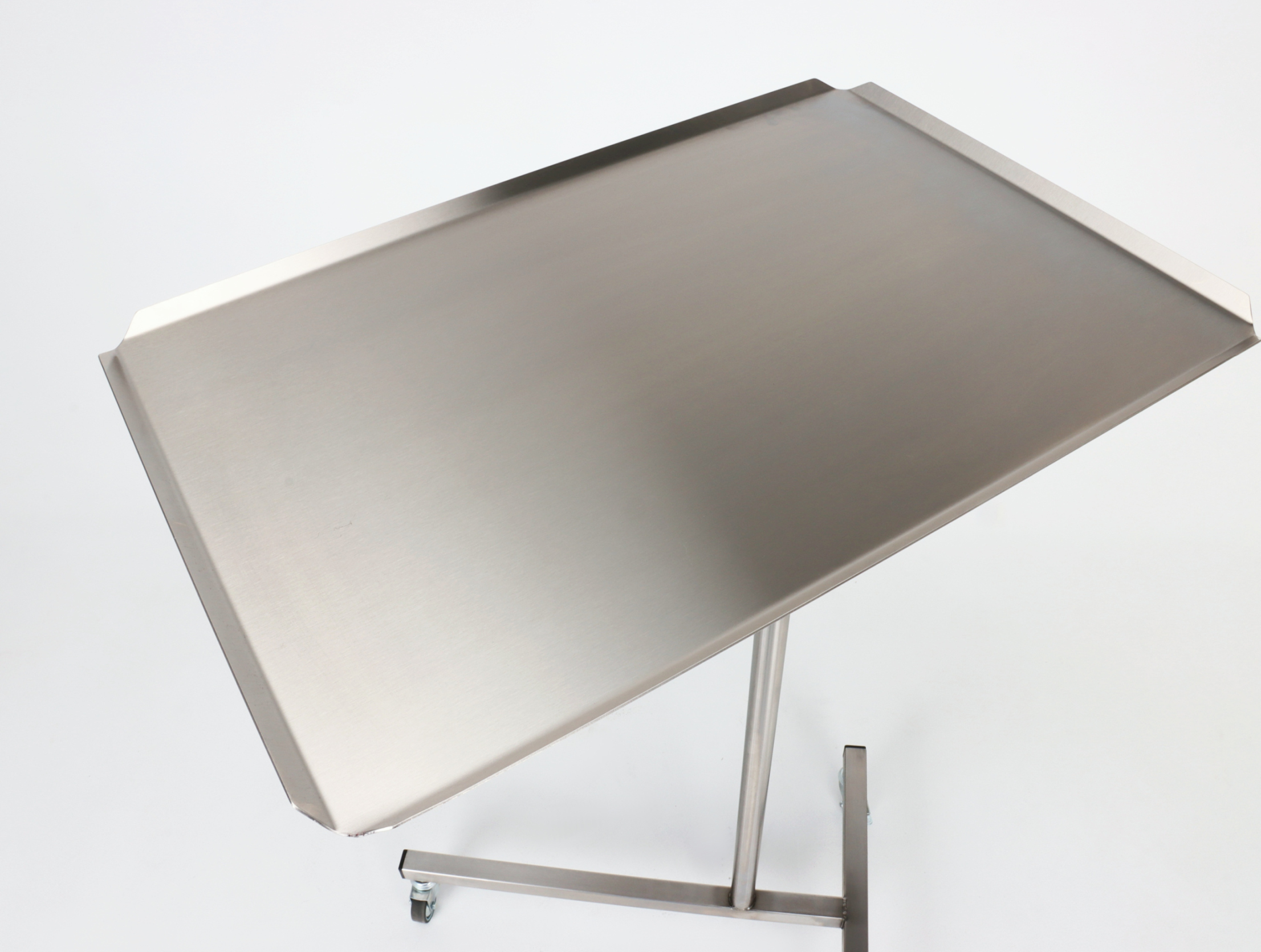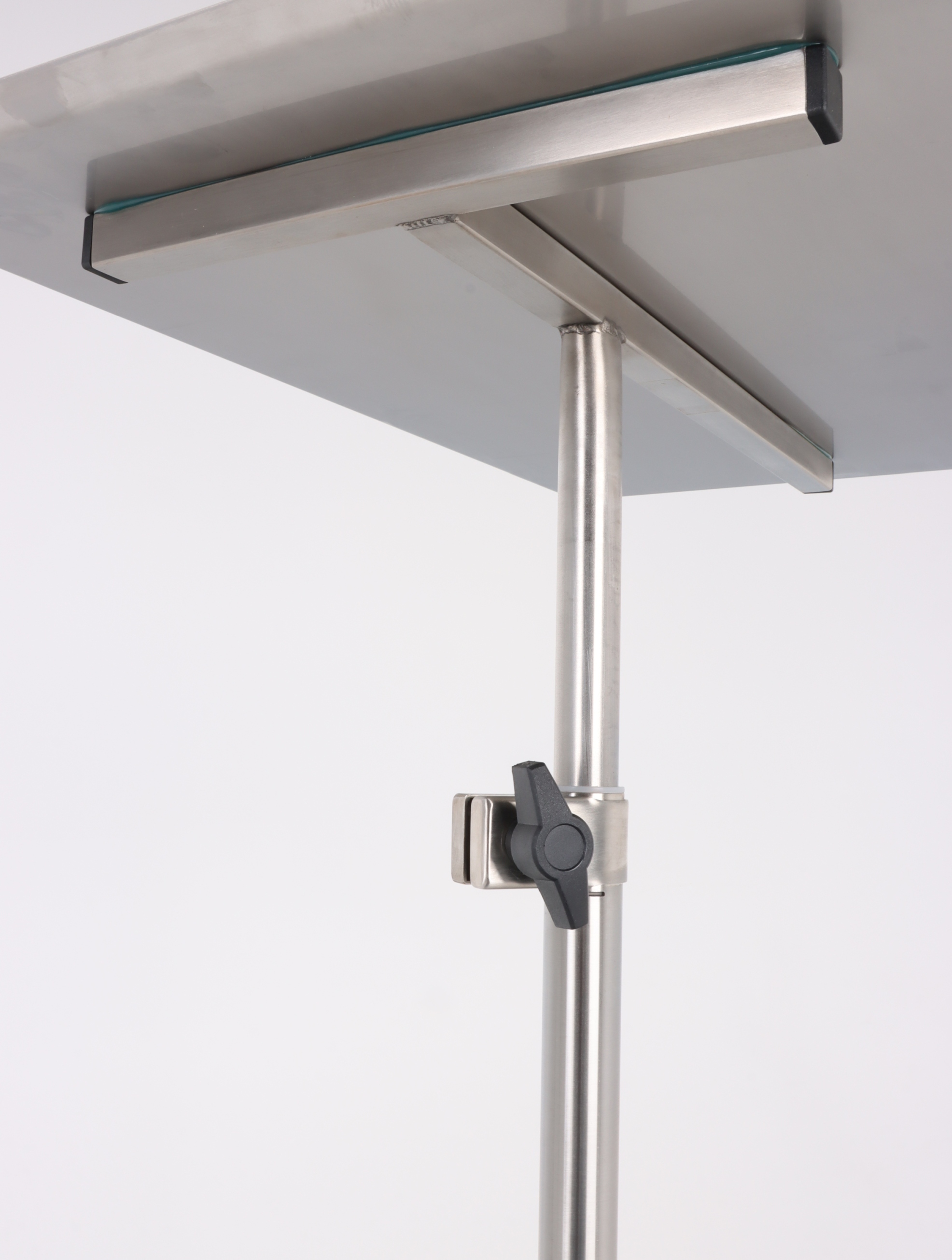 Blat z rantem, kolumna oraz podstawa stolika wykonana ze stali nierdzewnej,