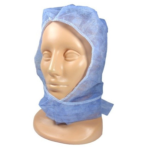 Jednorazowy czepek zabiegowy typu hełm wiązany na troki wyposażony w wkładkę pochłaniającą pot.