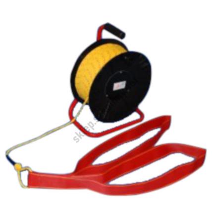 na końcu liny umieszczone zostały szelki do holowania tonącego. Produkt przydatny do podejmowania akcji ratunkowej na wodach otwartych.