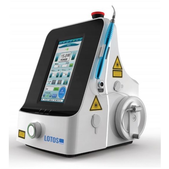 Laser naczyniowy Lotos to niewielkie urządzenie o mocy 15W i długości fali 1470 nm. Dzięki bogatemu wyposażeniu może być stosowany zarówno do zabiegów wewnątrznaczyniowych (EVLT/EVLA), jak i leczenia hemoroidów czy lipolizy laserowej. Wygodna obsługa za pomocą wyświetlacza dotykowego powoduje, że laser jest niezykle prosty w użyciu. Przy powtarzaniu zabiegów nie trzeba za każdym razem ustawiać parametrów pracy, ponieważ laser ma możliwość zapisania 20 programów pracy.