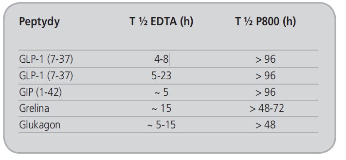 Probówka BD™ P800 jest przeznaczona do konserwacji białek osocza i zawiera opatentowaną mieszaninę inhibitorów proteaz, esteraz i peptydazy dipeptydylowej IV (DPP-IV), które rozpuszczają się natychmiast w trakcie pobierania krwi. Probówka BD™ P800 zapewnia stabilizację peptydów inkretynowych uwalnianych podczas jedzenia – peptydu glukagonopodobnego I (GLP-1), żołądkowego peptydu hamującego (GIP), glukagonu i greliny. Inkretyny związane są z chorobami metabolicznymi takimi jak: cukrzyca typu II i otyłość.