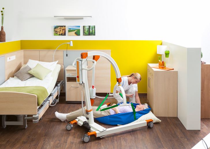 Mobilny podnośnik elektryczny CARLO Classic stworzony został, aby poprawić wygodę pacjenta oraz komfort pracy personelu pielęgniarskiego. Stelaż wykonany jest z aluminium, co powoduje, że cała konstrukcja jest lekka, a zarazem bardzo stabilna. Do obsługi podnośnika wystarczy tylko jedna osoba, nawet w przypadku konieczności podniesienia pacjenta z podłogi. Przyczynia się do tego wysięgnik, który można opuścić aż do samej podłogi, a także proste w obsłudze czteropunktowe zaczepy szlufkowe, które dodatkowo minimalizują każdy ruch, dzięki czemu pacjent czuje się bezpiecznie i stabilnie. Podnośnik zapewnia każdorazowo ergonomiczną, bezpieczną oraz efektywną pracę, bez konieczności dodatkowego obciążenia aparatu ruchowego poprzez podnoszenie lub przenoszenie pacjenta siłą własnych mięśni.