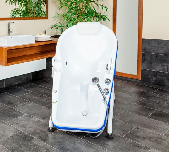 Pozycja wyjściowa wanny umożliwia osobom niepełnosprawnym - przy niewielkim udziale opiekuna - wejść do wanny. Ergonomiczna pozycja siedząca oraz materiał antypoślizgowy całkowicie chronią pacjenta przed poślizgiem w wannie. Obsługa pneumatycznym, bezpiecznym pilotem, daje możliwość swobodnego pozycjonowania wanny, aż do całkowitego poziomu. Dzięki tym zaletom zabiegi higieniczne dają poczucie samodzielności osobom wymagającym opieki, pozwalają na zachowanie godności oraz stwarzają okazję do zachowania intymności.