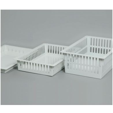 Te modułowe kosze zostały zrobione zgodnie z normą Euronorm w wymiarach 600 x 400 mm i 300 x 400 mm. Kosze wytwarzane wtryskowo z tworzywa ABS (Acrylonitrile Butadiene Styrene). Tworzywo to jest najbardziej ekonomiczne w systemie koszy i tac. Tworzywo ABS jest antystatyczne o wysokiej odporności chemicznej i mechanicznej. Dostępne w kolorze jasnoszarym.