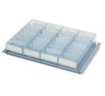 System pozwala na łatwe dozowanie leków dla poszczególnych pacjentów. Te małe kasety o długości 400 mm i różnych szerokościach posiadają przegrody z możliwością oznaczenia etykietami są czytelne i ekonomiczne.