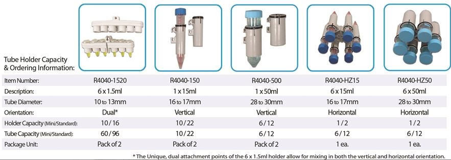 - 18x1.5ml, 2x15ml i 2x50ml w przypadku modelu R4040 (RotoBot Mini)