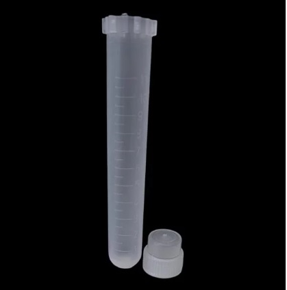 - Z boku probówki widoczna skala, z podziałką co 0,5ml